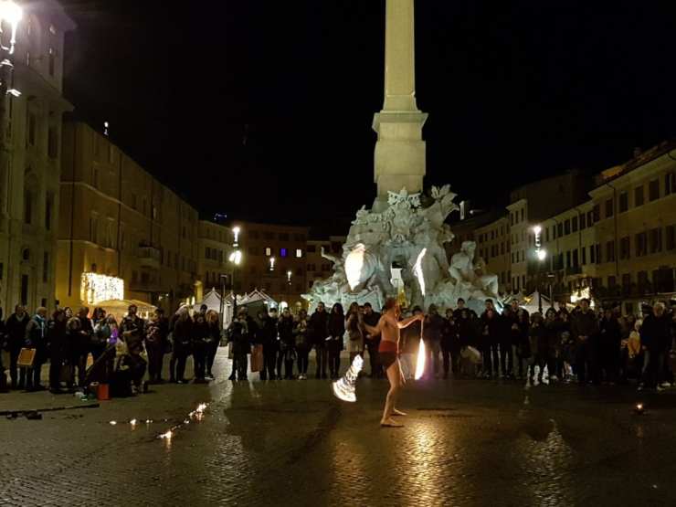 It was the morning of Christmas eve when I wrote this but life right now is caught in a tornado of socialising in Delhi where the days are pleasant and the sun is ripe with mellow beauty. The skies are blue and I am getting a few sunrises into my kitty as I head out for early morning runs with the cool wind in my hair. Here I feel the need for four stomachs as I did in Rome (as I always do) for my mother-in-law has been rustling up feasts every day for meals at home, you see. Time at hand is a bit tight so I thought I would share some clips of the night lights of Rome. The Christmas spirit there is all over the city and quietly cemented by the elegance of its ancient Corinthian columns, the cupolas and domes and clock towers.